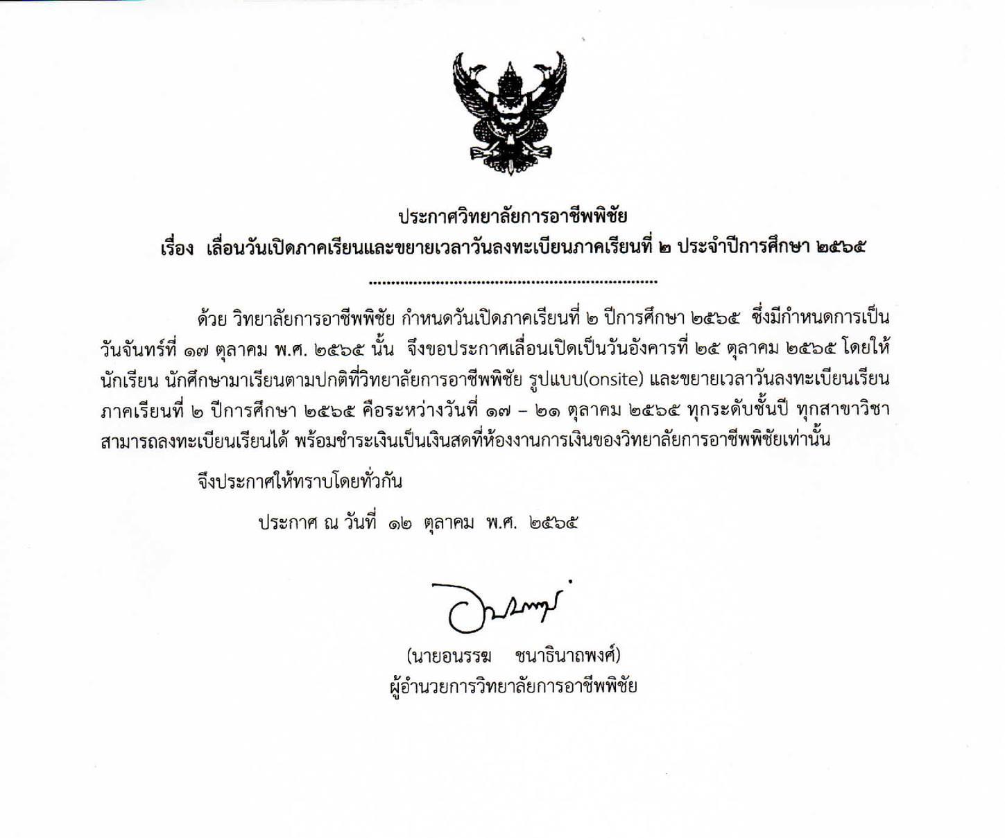 รับสมัครตั้งแต่วันที่ 12-18 ตุลาคม 2565 (ในเวลาราชการ) ยื่นใบสมัครด้วยตนเอง ณ วิทยาลัยการอาชีพพิชัย