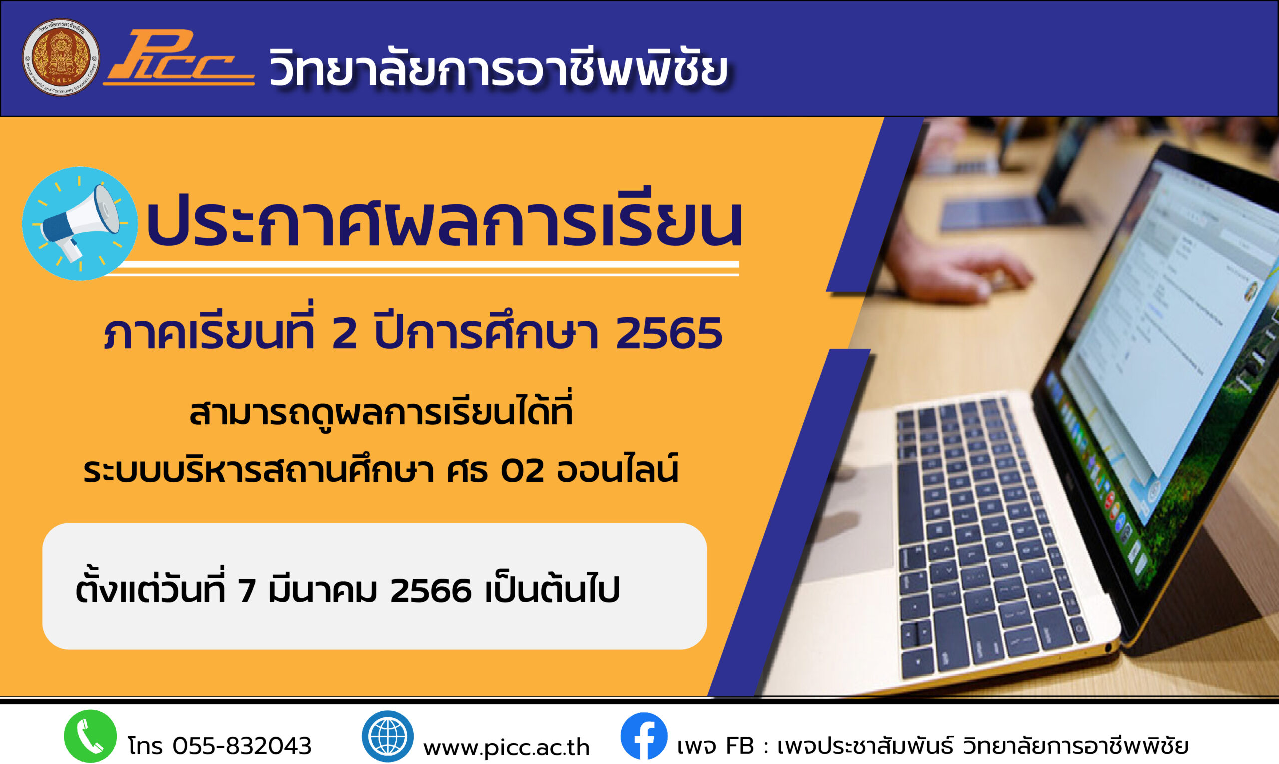 ประกาศผลการเรียน ภาคเรียนที่ 2/2565